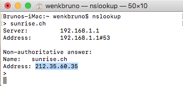 nslookup: IP-Adresse des Servers mit dem Namen "sunrise.ch"